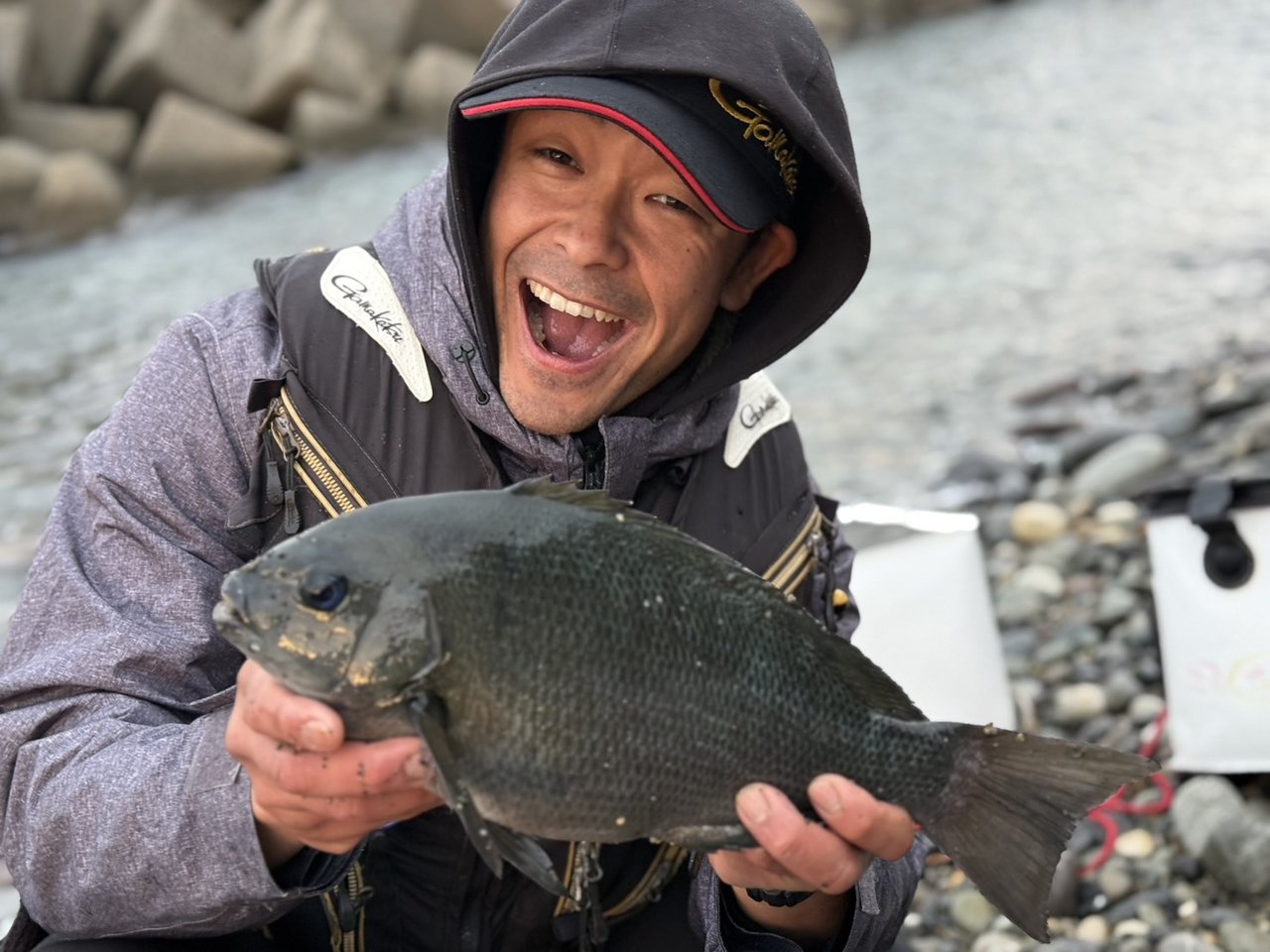 ヒットしたのはゲストフィッシュのクロダイ。磯の綺麗な個体でナイスフィッシュだったそうです♪