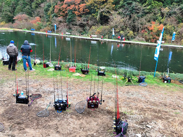 今回競技会場となった足柄キャスティングエリアは、エリア主催による「足柄縦王戦」が年6回も開催されるほど縦釣りに馴染み深いエリア!水深も50cm~3m弱までと幅が広く、ポンド内には大きな岩、石なども点在する変化に富んだ人気フィールドです!