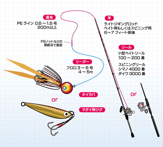 タックルイメージ図:ライン号数など細かなセッティング内容は地域や船宿により推奨が異なる場合があります。