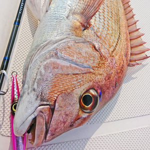秋田のマダイ攻略はタイラバ(タイカブラ)が人気ですが、ポイントによりジグでも好釣果が狙えます!狙う水深は40~60mラインをメイントしつつ、盛期には20~40mラインの浅場も狙うので状況に応じた使い分けがキモとなってきます。