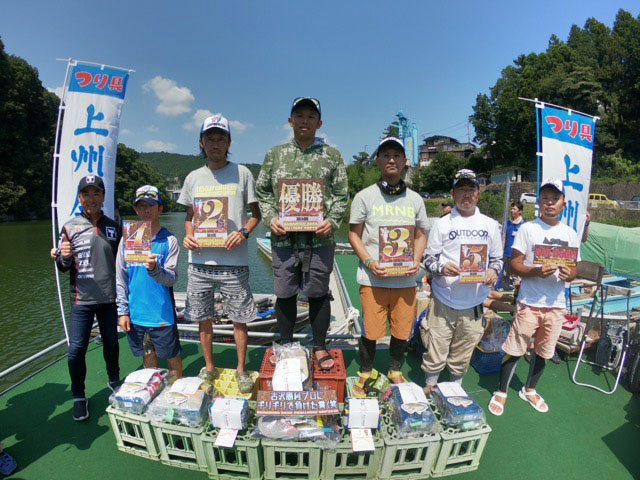 今回見事優勝されたのは原島翼様(記録:3匹/3040g)!メインエリアは吉野ワンドから下流のエリアでノーシンカーやOSP ドライブSSギルで3~4mラインをずる引きで狙い1300gを交ぜて栄冠を勝ち取りました!