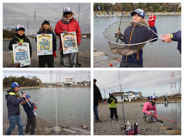 午前9時45分よりジュニアとレディースによる早掛け大会を開催!まずは、ジュニアが釣りをスタートし、3分後にレディースがスタートします。タモ入れ直前のバラシもありハラハラドキドキの展開で場内を沸かせました。