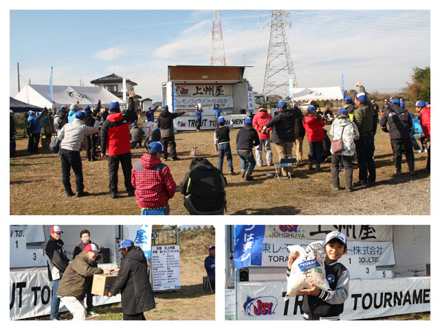 また、今大会では鬼怒川フィッシングエリアの協力を得て、タグ付きトラウトを放流。釣り上げた方に特別賞を進呈しました。大会終了後も、この残ったタグ付きトラウトを釣上げた方には上州屋&東レより賞品(※)を差し上げております!見事タグ付きトラウトを釣られた方は、魚にタグが付いた状態で鬼怒川フィッシングエリア事務所までお持ちください。