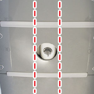クーラーボックスや燃料タンク等、船内の荷物固定に役立つDリングを14個設置。通常より低い位置なので荷物をしっかりと底板に固定できます。