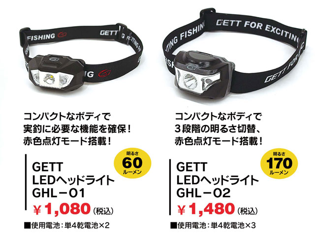GETT(ゲット)より魚に警戒心を与えづらい“赤色点灯モード”を搭載した「LEDヘッドライトGHL-01/GHL-02」を2023年6月より販売!