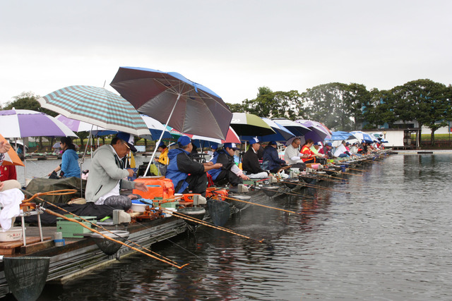 スタート直後は雨による水温低下の影響で食い渋りが見られたものの時間の経過と共に竿が曲がり出し、特に雨が上がってからは釣果も上向いて各所で緊張感のある競技模様となりました。