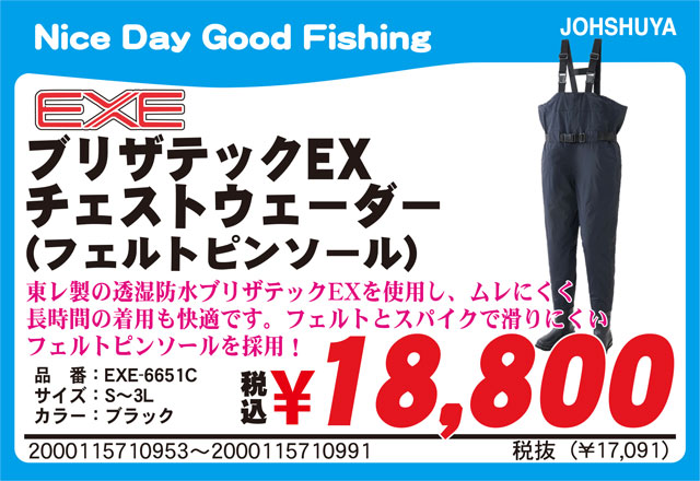 RYOBI“EXE(エグゼ)”シリーズより、「ブリザテックEXチェストウェーダーEXE-6683CR(ラジアルソール)」および「ブリザテックEXチェストウェーダーEXE-6651C(フェルトピンソール)」が登場!