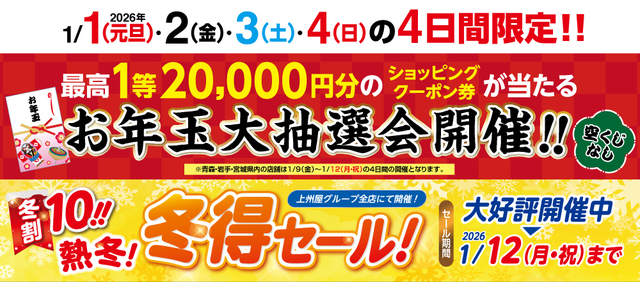 上州屋各店はビルイン、テナント店など一部店舗を除き、年末年始も休まず営業します!