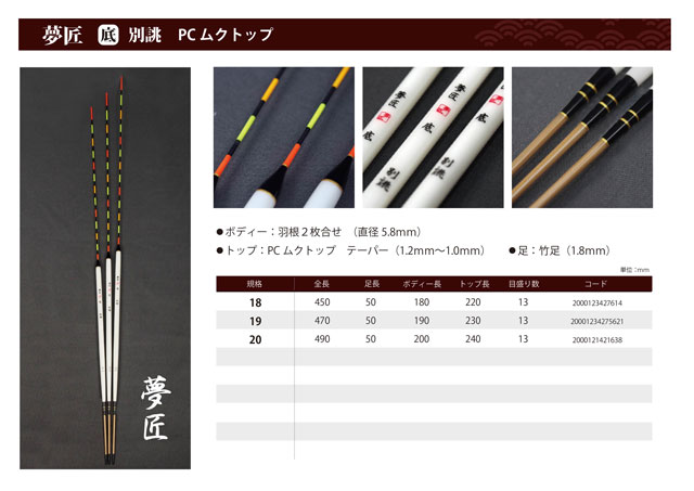 〔2026新製品〕浮子の全長が40cmを超える「夢匠」【底】別跳パイプトップシリーズ。長竿による深ダナ攻略など、深い場所を、重い仕掛けで、豪快かつ繊細に狙い、遠い場所に立った浮子もしっかり見える視認性を備えています。