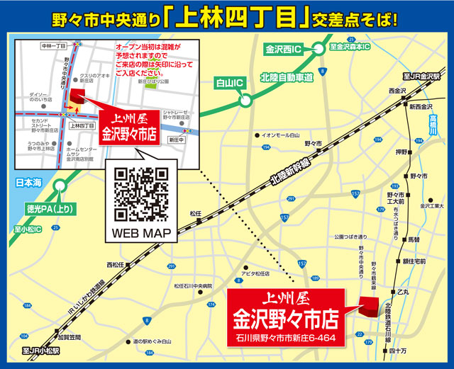 上州屋金沢店が移転!4/21(火)上州屋金沢野々市店としてBIGにオープンします!