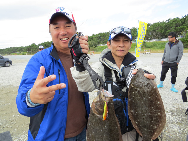ビーチウォーカーフリッパーZ36で2枚の釣果!堀田プロと記念写真!