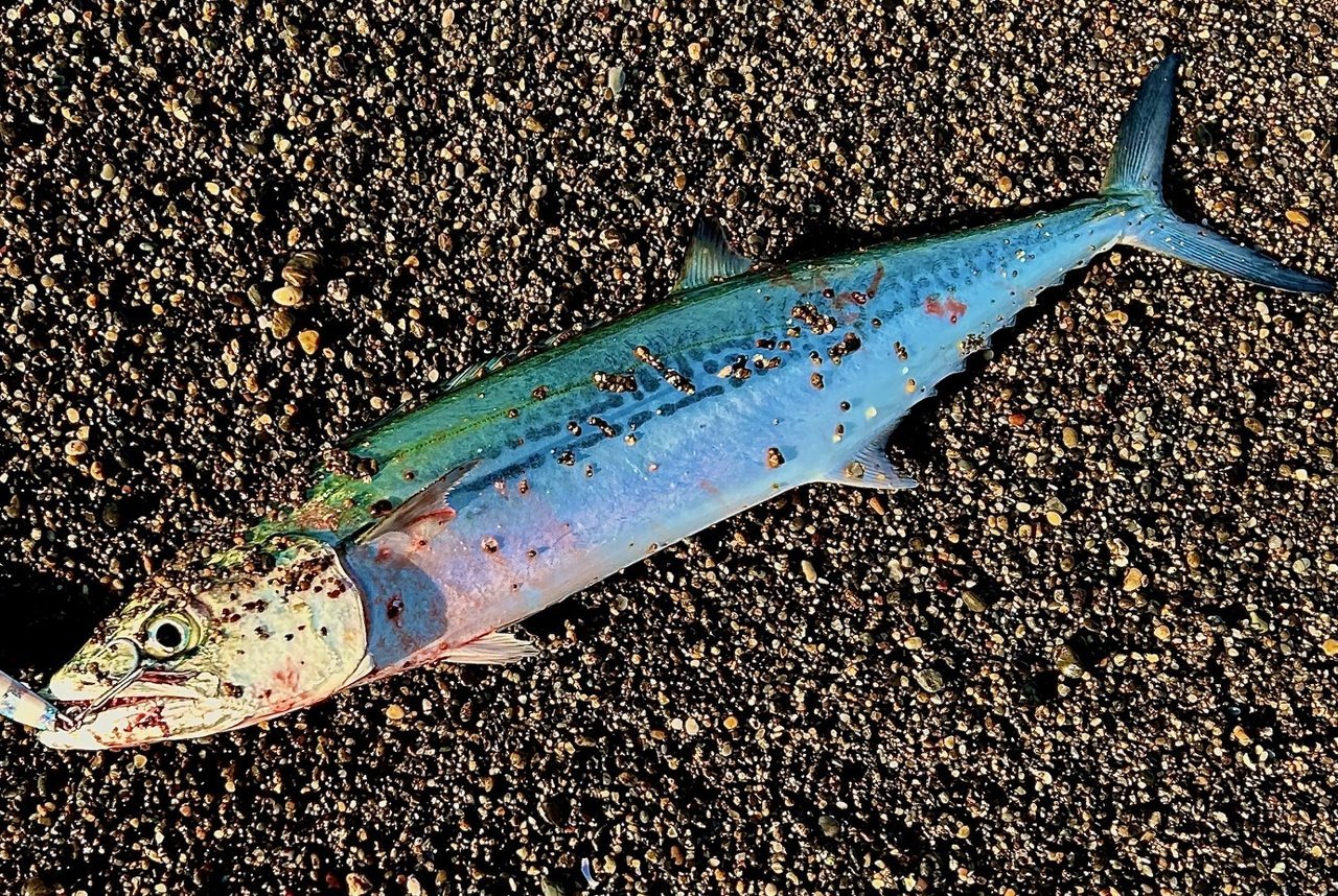 予想よりもやや波が高い状況でしたがサゴシが釣れてくれました。シラスを吐いたのでまだマイクロベイトパターン継続中のようです。