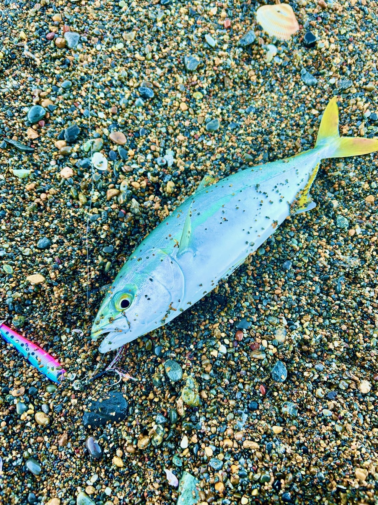 しばらくして、ワカシは以外の魚も狙えないかと、スロー系のメタルジグで底物狙いに変更したところ、スローフォールが今回のワカシのヒットパターンにハマってしまい、底を取れないくらいの入れ食い状態になってしまった為断念し、9時頃に納竿しました。