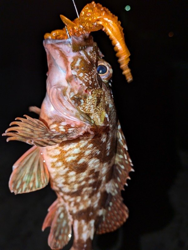 ■ロッド:SMRS-76S ■リール:22ステラC2500S ■ライン:ハードブル0.8号+グランドマックス3号 ■ルアー:根魚玉7g+キャラメルシャッド3.5”