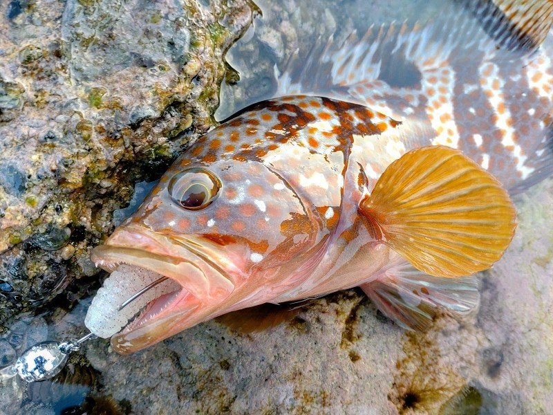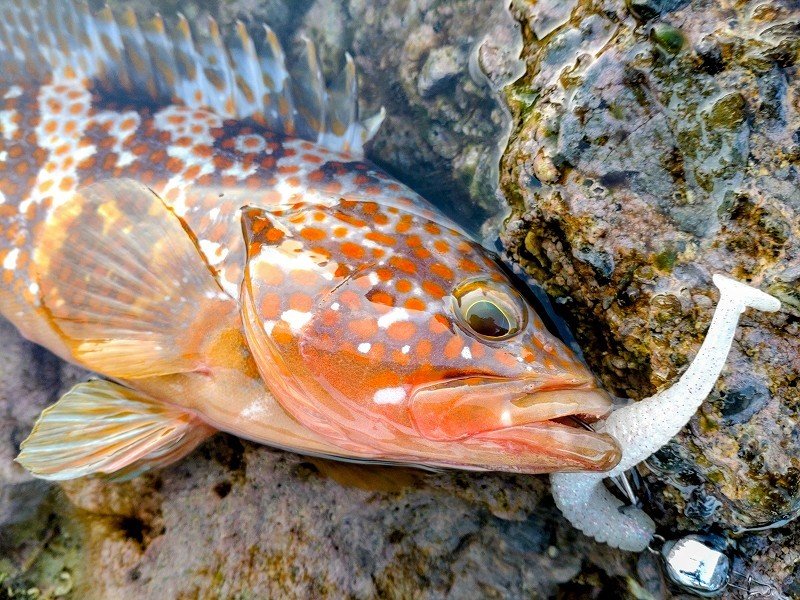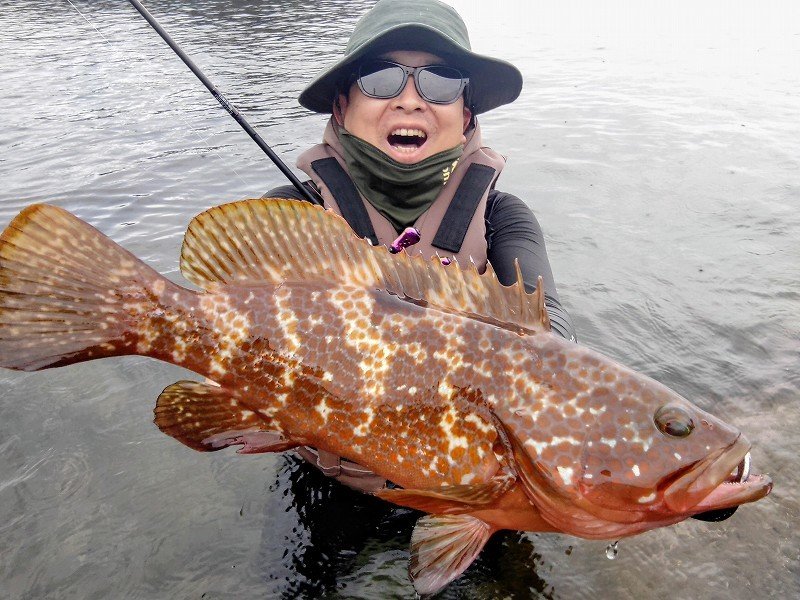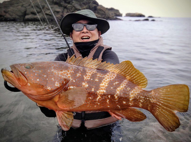 鶴岡店ルアー担当:跡邊です。まるまる一か月ぶりに釣りへ行ってきました。水温はぬるいままで魚っ気が復活した感じで雰囲気良く何と一投目からナイスサイズがヒット!今回はエギングも一緒に楽しむためにライトタックルだったのでロッドがブチ曲がり&重量感がヤバかったですが幸先良く30後半をキャッチ!一投でキジハタは満足しエギングに移行したのですがイカが追いかけてこない…何故だ??その後はエギを着底させしっかりとシャクリ上げてくるとガツンっ!即原因判明!!キジハタ高活性…これじゃイカが出てこれません…しかも引っ掛かってきたキジハタもなかなかに良いサイズ!!再びキジハタ狙いに移行し根魚玉+キャラメルシャッド3.5”のセットでスイミングさせるとドンっとヒット!浮いて来ない…何とか距離を詰めるもリフト出来ず4~5回根掛かりするもラインブレイクせずに無事キャッチ!念願の40UPでした!このサイズ痺れますね~!少しポイントを移動してエギング再開すると居る!居る!アオリイカ!!時間が迫り、釣りたい気持ちを抑えて終了となりました。この秋はマルチロッドでエギングからキジハタ、アジング、カマス、ショゴいろんな魚種を釣って楽しもうと思います。