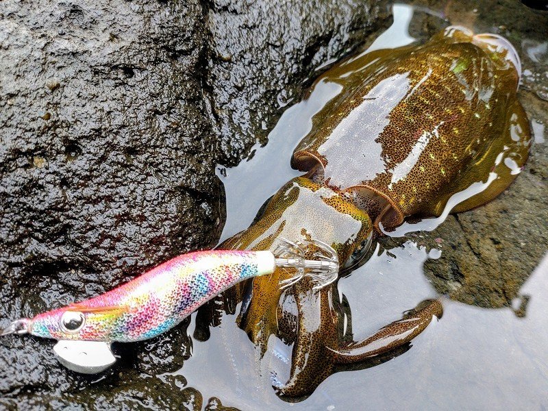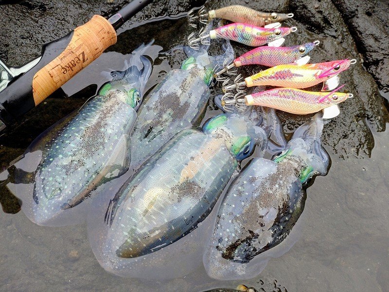 ■ロッド:Zeake-SMRS-76S ■リール:22ステラC2500S ■ライン:PE0.8号+フロロ3.5号 ■ルアー:エギ王サーチ/ライブ&根魚玉+キャラメルシャッド