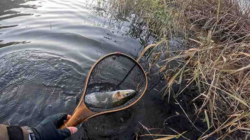 朝からの午後2時頃までの釣り。ニジマスの釣果は朝方に出ました。渡良瀬川は現在、渇水中で流れが緩く活性が上がり難い状況のようです。今回、アタリがあったポイントは水深があり流れが効いたポイントでした。魚は多く入っているのでタイミング良ければ釣れると言った状況です。一雨ほしいところです。