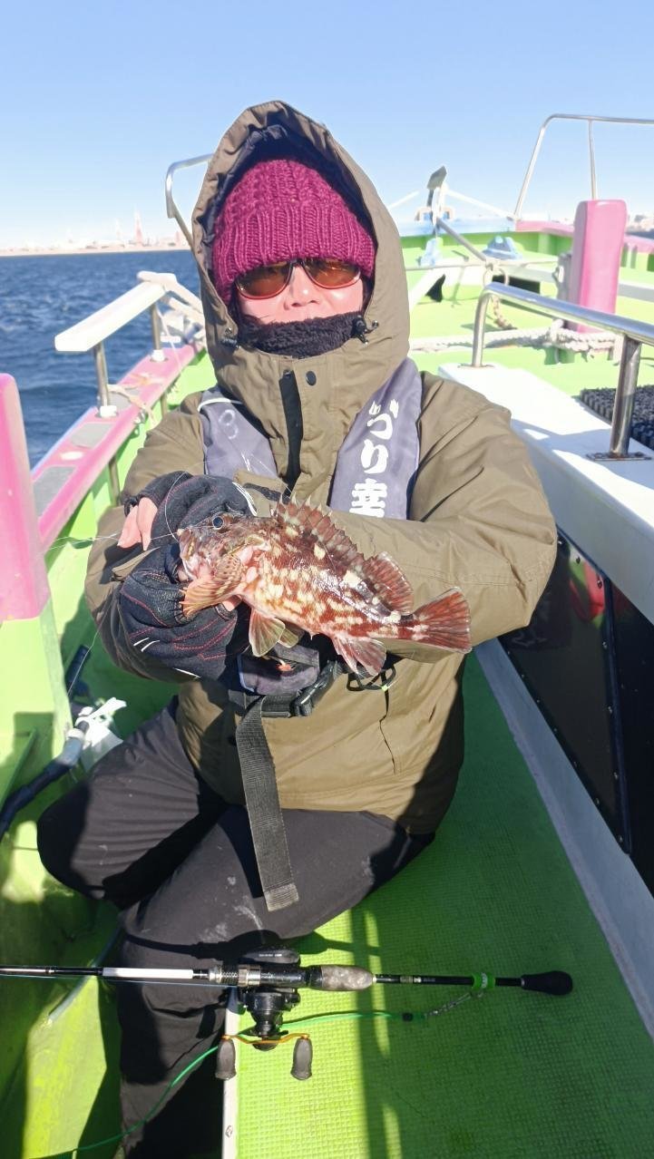 根まわりポイントでは良型のカサゴも釣れ、クーラーもにぎやかに・・・