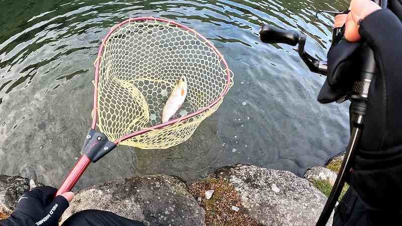 苦戦しているところラッキーなことに放流タイム到来!しっかり放流を捉え何とか形になった午前。昼食を挟み午後はやはり厳しい状況もROB『ママバービーSS』を底近くでデットスローに巻くと幾分、アタリをもらえました。
