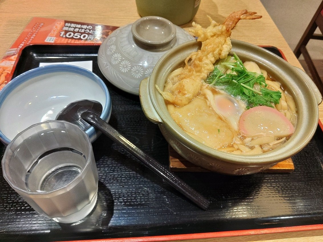 帰りに暖かい鍋焼きうどんを食べて帰りました。