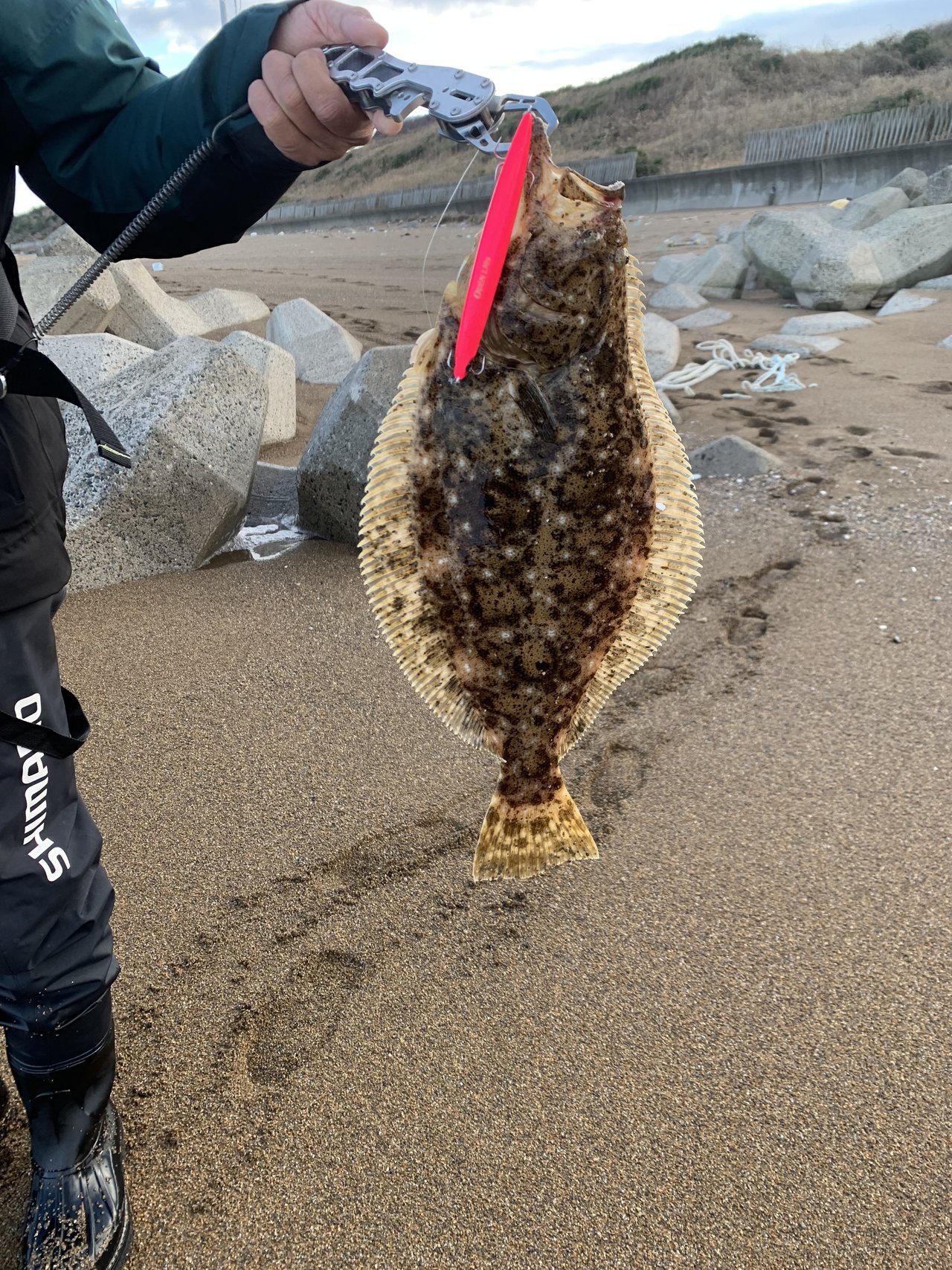 ポイント到着は昼過ぎ、風は釣りに無理のない程度ですが天候は生憎の雨。欲張って6本針にエサは青イソメをチョイス。まずは軽く投げてみると1投目からキスをゲット!2投目は回収中にバラしてしまいますが続く3投目でもう1匹追加!今日はキスのお刺身が沢山楽しめるなぁ等と邪念たっぷりで続けてみるとアタリがピタリと止まります。。。広範囲に探ってみると魚からの反応が出るのですがチャリコ。。その後はチャリコ地獄に苛まれつつ前回釣れ出した夕マズメを迎えます。遠投した先で期待通りキスのアタリが出てキスをキャッチ。更にアタリも続き更に1匹!今回はライトも持って来ていて準備万端。。なのですが次第にアタリが無くなり6時過ぎに納竿終了。時合いが短く取りきれなかったキスを悔やむクリスマス釣行となりました。