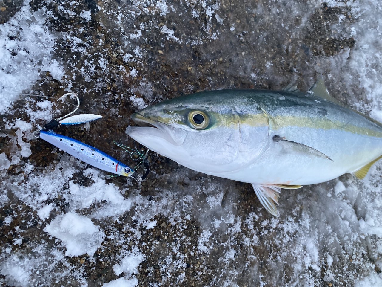到着は昼過ぎ、風が時折強く吹き雪が降る時間もありましたが晴れ間は暖かく気持ちの良い釣り日和!