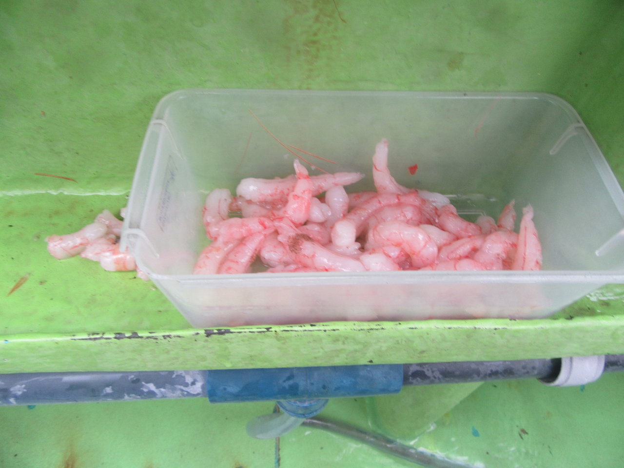 一番の大物?捕獲の後、山崎さんが先日、羽生水族館の7井さんから