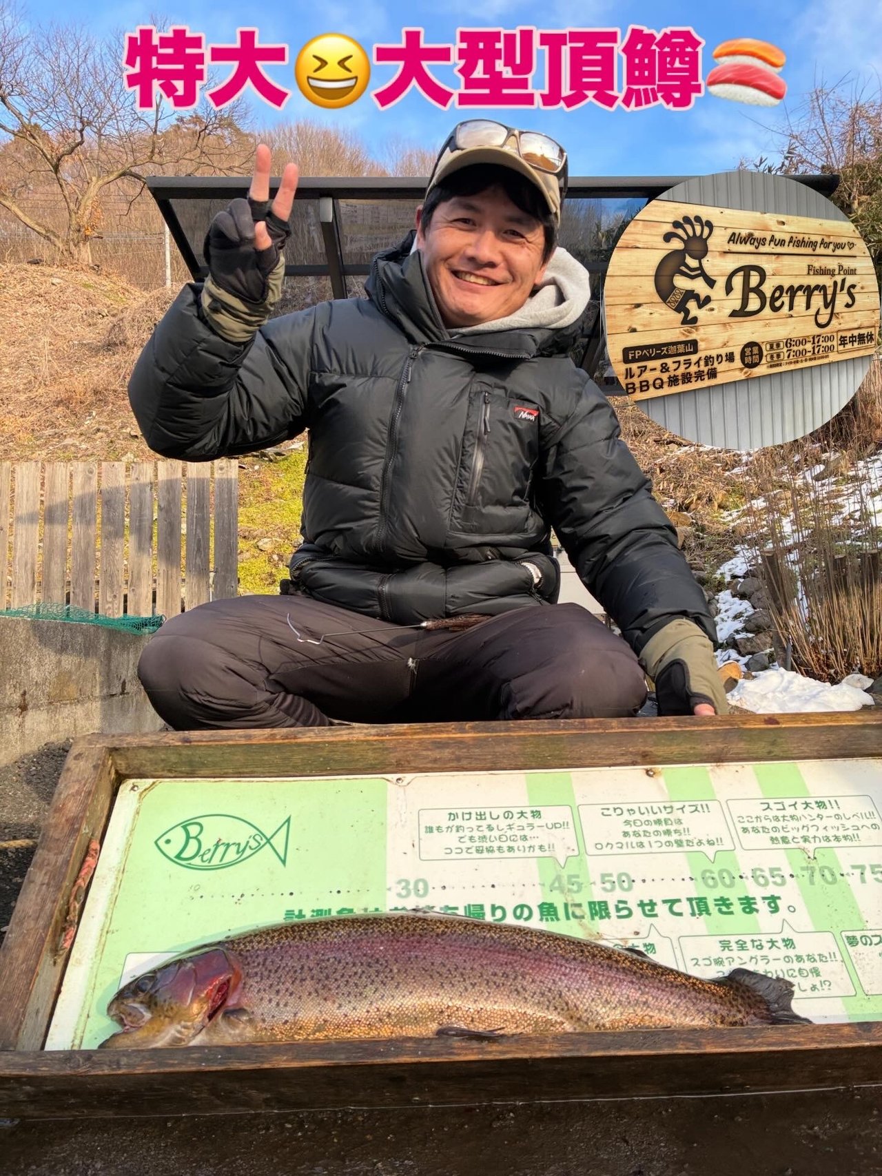 今日のベリーズ迦葉山は60アップかなり釣れてましたよ!ちょいと寒いですがコンディションの良い鱒が良く釣れてますので是非足を運んでみて下さい!