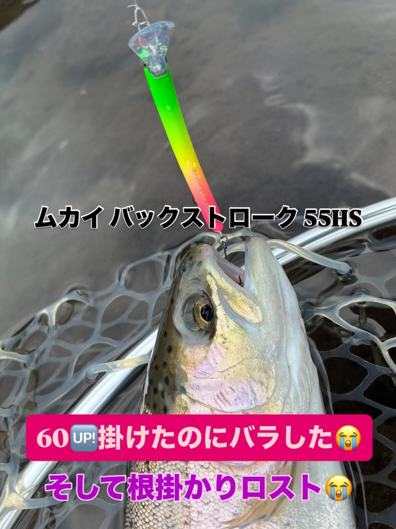 見事に20数年間ではじめてのマス捕獲成功ww