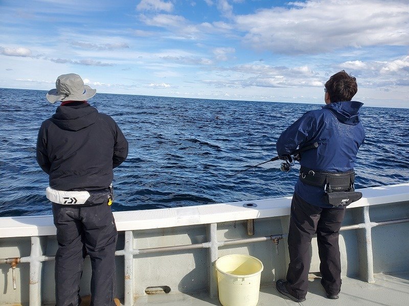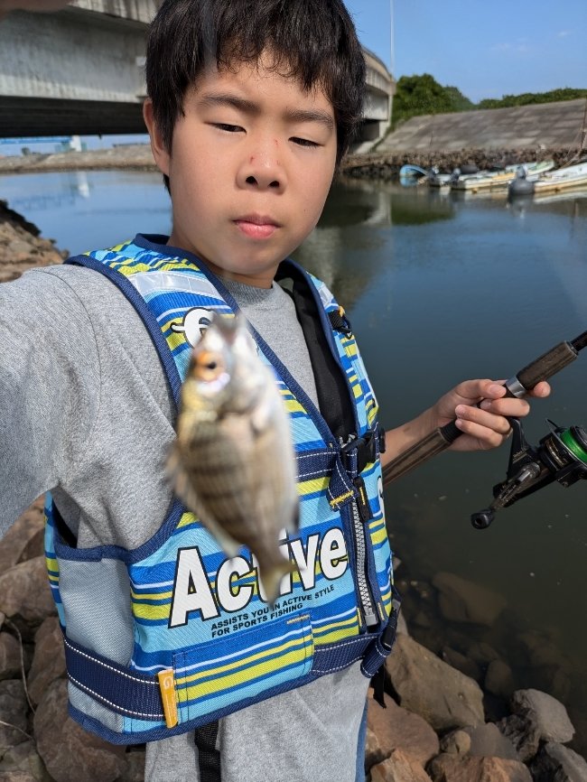 流石船頭さんの息子ですこちらにもアタリが有り合わせが弱かったのか水面でバラシ浮いていたので