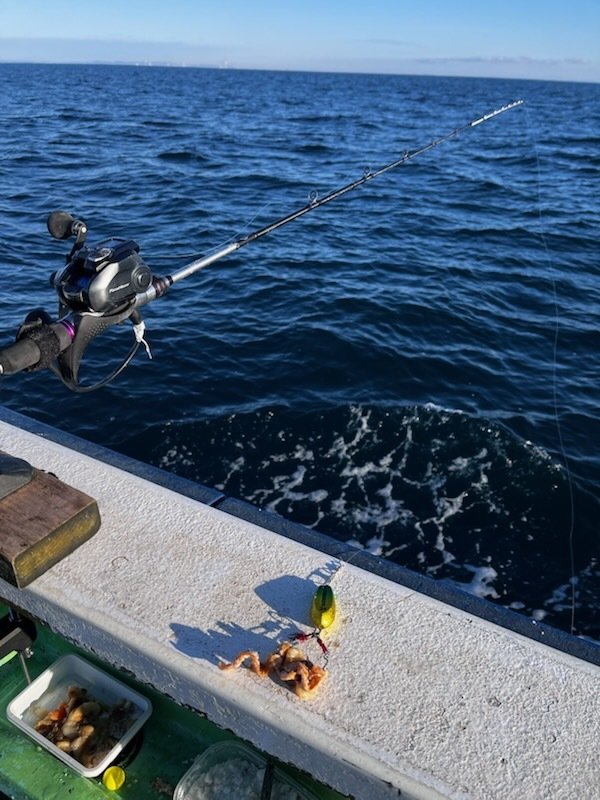 近場は最近不調なので沖のポイントへか一時間十分ほど新地沖50mラインから