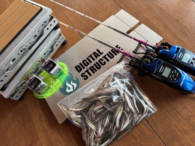 ■ロッド:82調子 180ロッド ■リール:シマノ フォースマスター601 ■ライン:PE・1.5号 ■仕掛:上州屋ライトアジビシ仕掛け・他自作品 ビシ40号 ■エサ:基本は空針 オキアミ・ソーセージ赤短