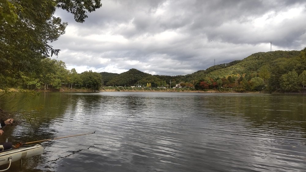 当日は雨予報の為か7時過ぎの段階で釣り人はおらず。8時を過ぎたころから同じ場所に2人と堰堤側に2人の計6人の釣り人。本日も遠路はるばる釣友のSさんと。こんな雨、風予報の時にお相手してくれるのはSさんくらい(´艸`)