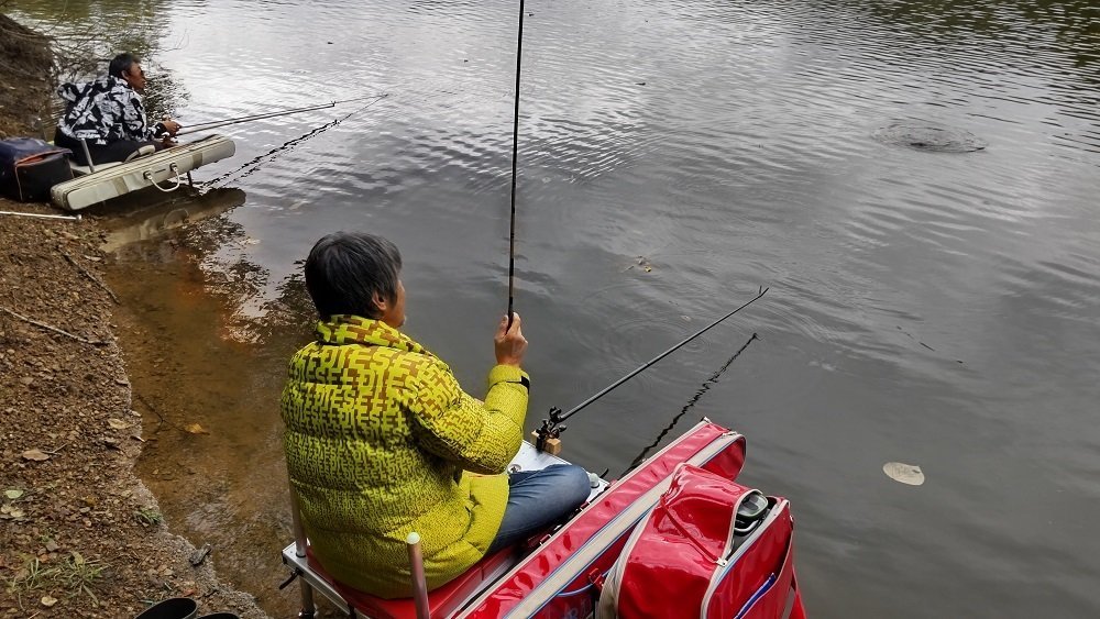 隣の釣り人は段底の釣りで釣果を出しているようなので深くしてみるも、水草が引っ掛かり釣りにならず元のタナ(深さ)に戻します。