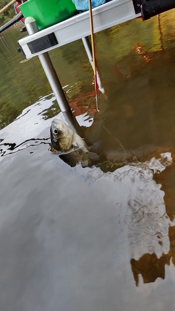 隣のSさんは途中から段底で攻めるも水草、ギル(?)、コイにより釣りづらそうでタナを宙釣りにしたらそこそこアタリ釣れていました。