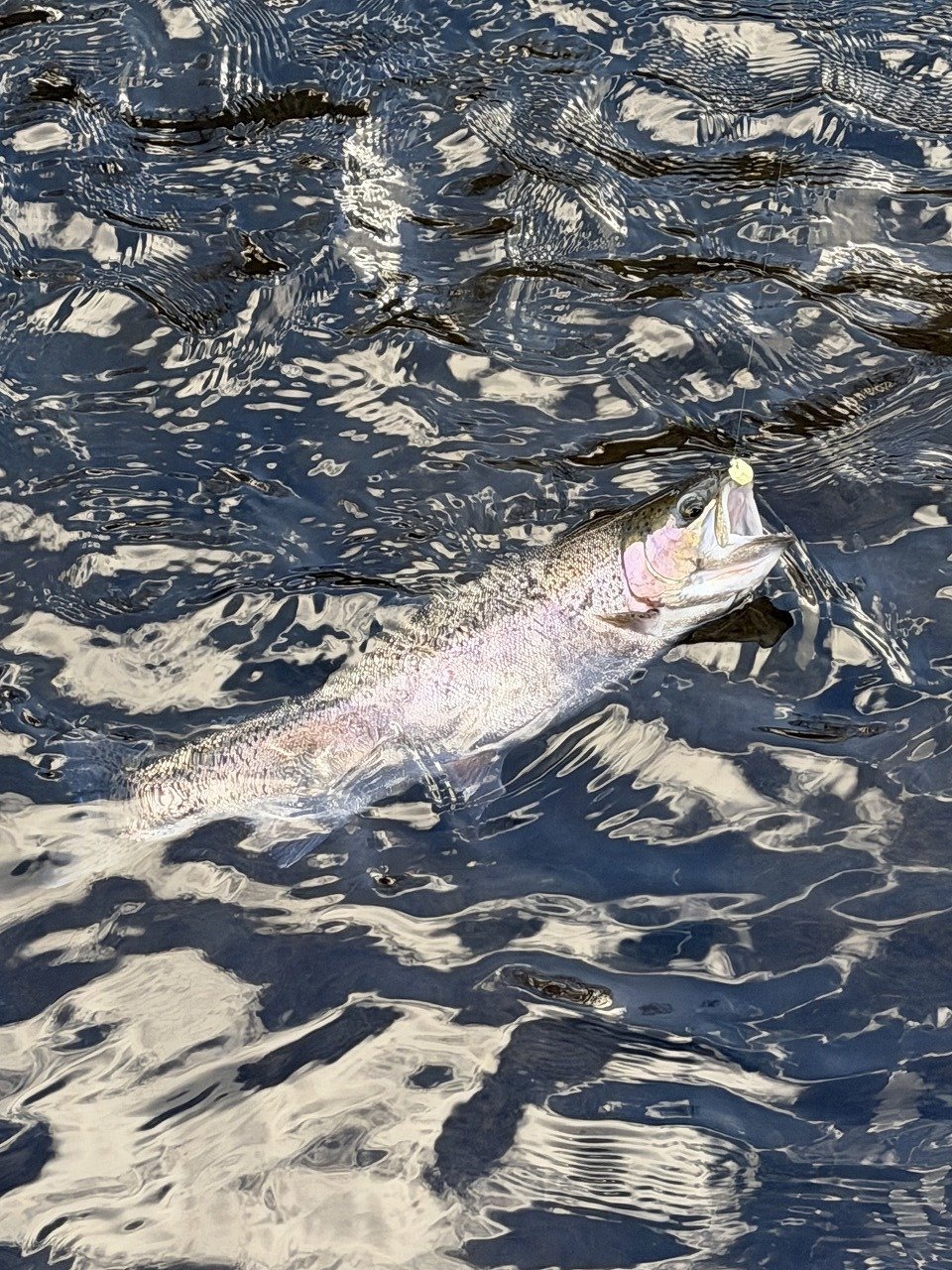 4号池のインレットでプレミアムX0.5gを流れに乗せて流すと一投目からアタリが!!同じようにルアーを入れると入れ食い状態に!!