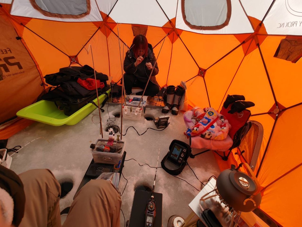 個人的には、氷上にテントを立てて穴の中からワカサギを釣り上げるだけで満足なので、今回もと~っても楽しい釣りができました(^^)/