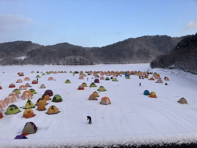 今回大志田ダム氷上ワカサギ釣り解禁は3年ぶりとということもあり到着がかなり遅くはなったものの駐車場はまだまだ余裕があり現地誘導員が丁寧に案内をしてくれるので難なく駐車できましたし、受付で遊漁券を購入し湖面へエントリーする際の降り口も以前のような長い急坂ではなく比較的降りやすくなっています♪また湖面への降り口前には簡易トイレも多めにあり男女別に設置されているのでファミリーや女性の方にも安心で使いやすくなっています。いよいよ各地で氷上ワカサギ釣りシーズンが始まりました!単独釣行はもちろん、友人でやファミリーで賑やかに楽しめるのも氷上ワカサギ釣りの醍醐味です♪是非この季節しかできないフィッシングレジャーを楽しんでください(^^)/
