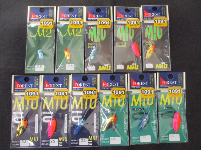 エリアトラウトルアー入荷第100弾は、フォレストのスプーン『MIU1,5g、MIU2,2g、MIU2,8g、M2の問屋1091カラー』が少々入荷しました。
