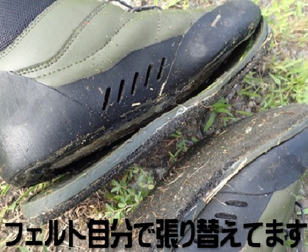 ソールはほとんどがフェルトでゴムソールの物もありますがコケの生えた水中を歩くにはフェルトの方が滑りにくく歩きやすいです。