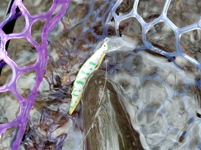 水量と流れの速さ、プレッシャーなどを考慮してまずは「イトウクラフト バルサ蝦夷50S」で魚の反応をチェック!!