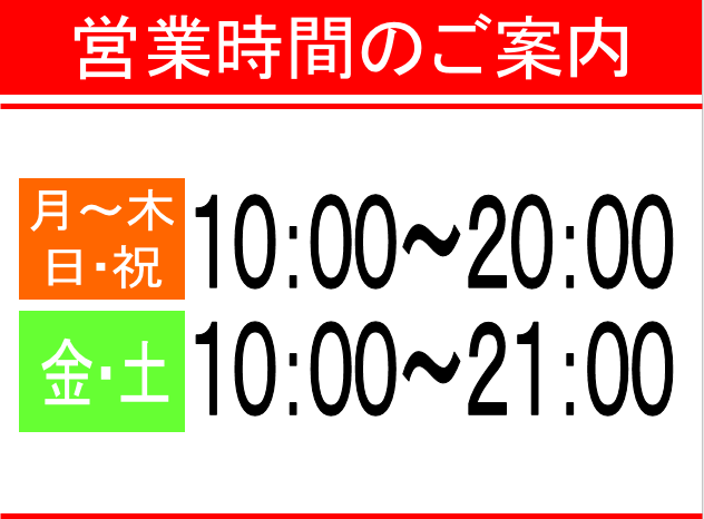 営業時間のご案内