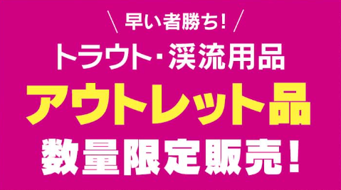 今年初開催となりますが、トラウト関連を含めたアウトレット品の販売もあります。