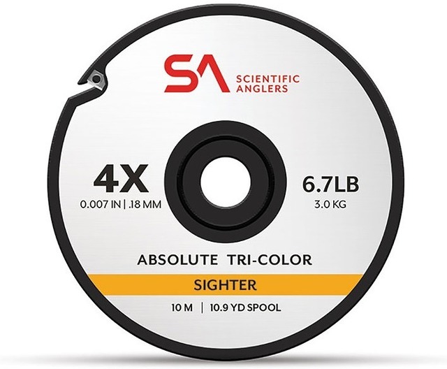 SA アブソリュート サイターティペット。ヨーロピアンスタイルニンフィングで使用するインジケーター代わりのティペットです。10インチごとに発色の良いグリーン/ホワイト/オレンジの3色で構成されており適宜カットしてリーダーの先端に結んで使用します。