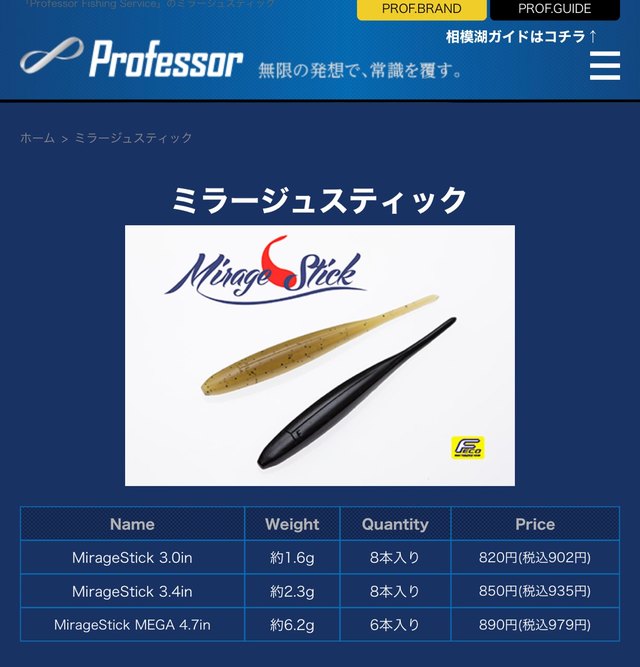 ワームはProfessorのミラージュスティック2.4inchがオススメ。