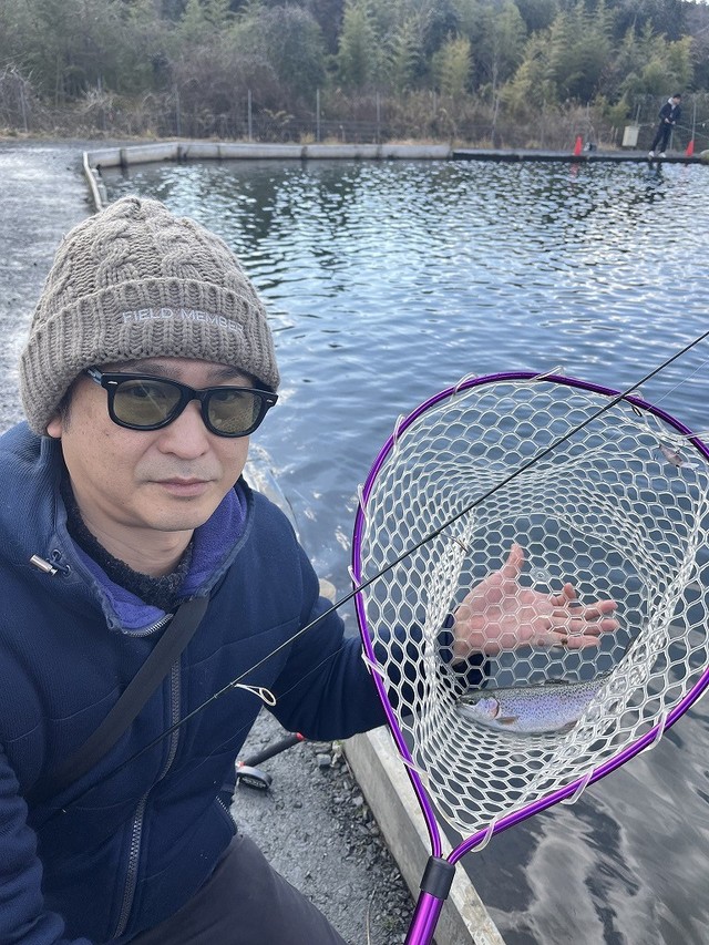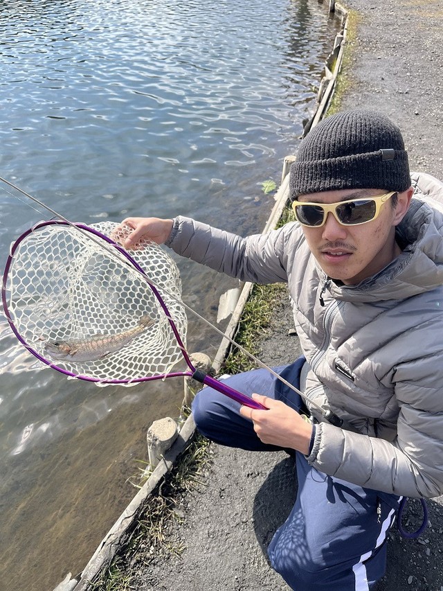 普段はエギングなど海のルアーフィッシングしか経験のない息子も、泳いでいる魚を見た瞬間からトラウトフィッシングにハマっていました。