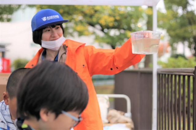 生物園のおにいさん&おねえさんが釣れた魚の生態や特徴を説明してくれます。