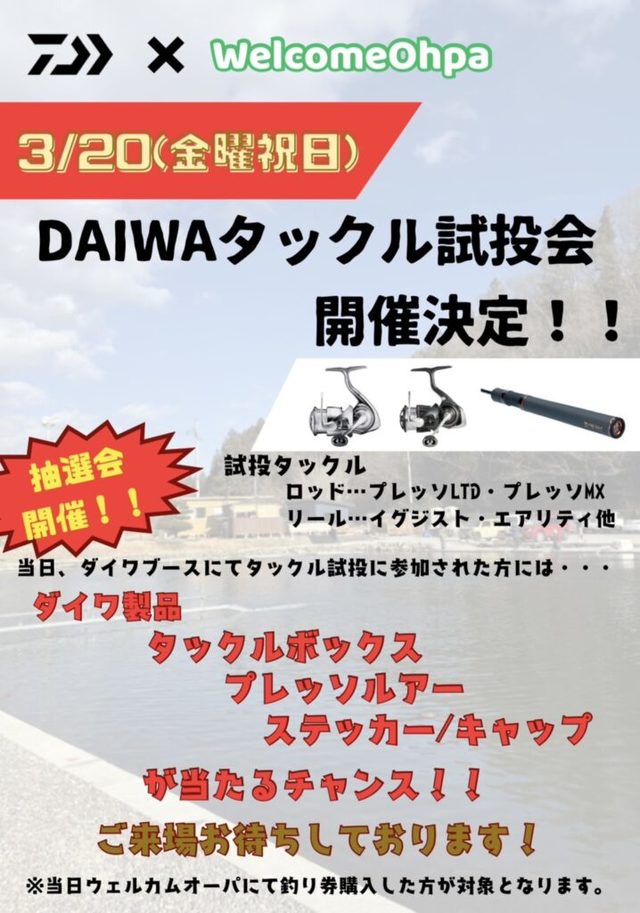 ウェルカムオーパ【DAIWAタックル試投会】開催