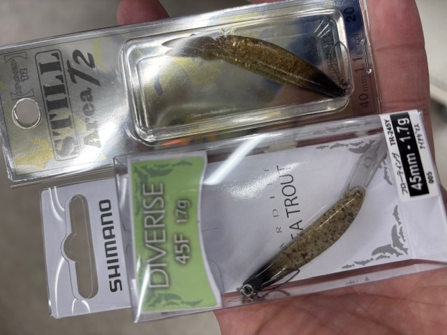 浮上系ミノーは、オーパで高実績のスミス「スティルエリアT2」と、シマノ「ダイバライズ」がメイン。