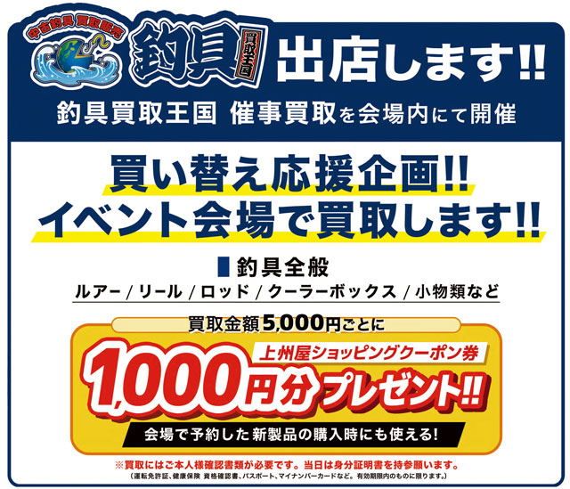 また今回は会場に「買取王国」の特設ブースが登場!使わなくなった釣具高く買い取ります!買取イベントを同時開催!